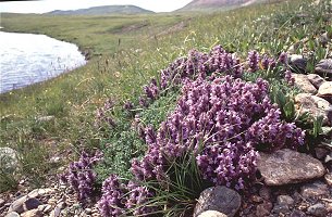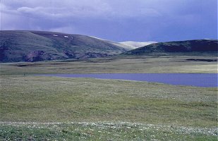 Kobresia tundras at Lake Tarkhattinskoe at the junction of the Yuzhno-Chuiskii and Sailyugem Mt. Ranges ![]()