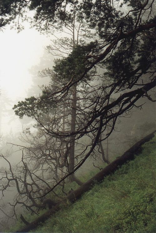Pines (Pinus silvestris L.) on SW slope of a limestone mountain over the Denisova Peshchera stationary, 5 km NW of Chernyi Anui village , Soloneshenskii Distr., Altaiskii Krai, 3rd July 2001.