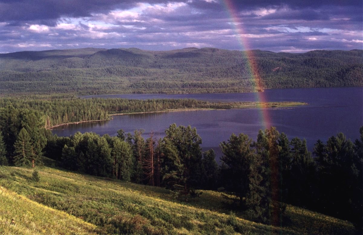 Rainbow over Lake Azas, situating in the Todzha Intermontane Hollow in NE part of Tyva Republic (Tuva), being the catchment of the Bii-Khem or Great Enisei River.