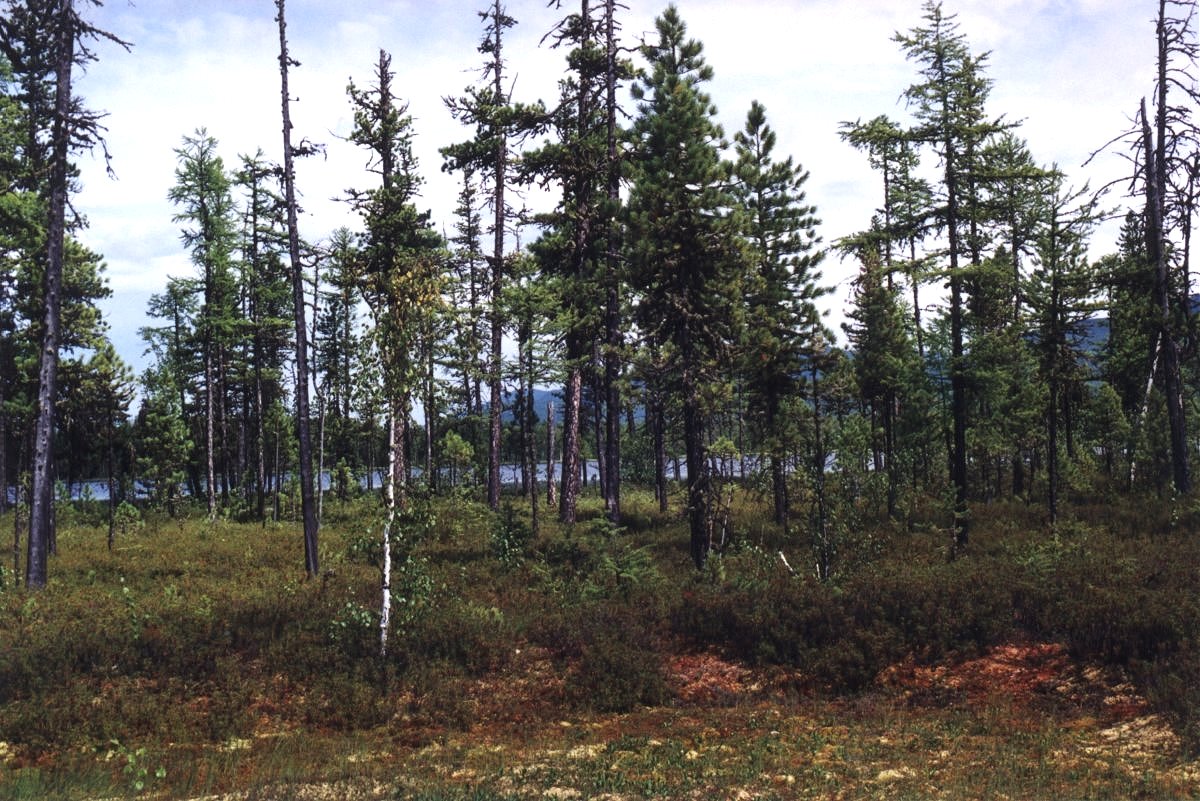 Seen are Siberian larches (Larix sibirica Ledeb.) and Siberian stone pines (Pinus sibirica Du Tour).