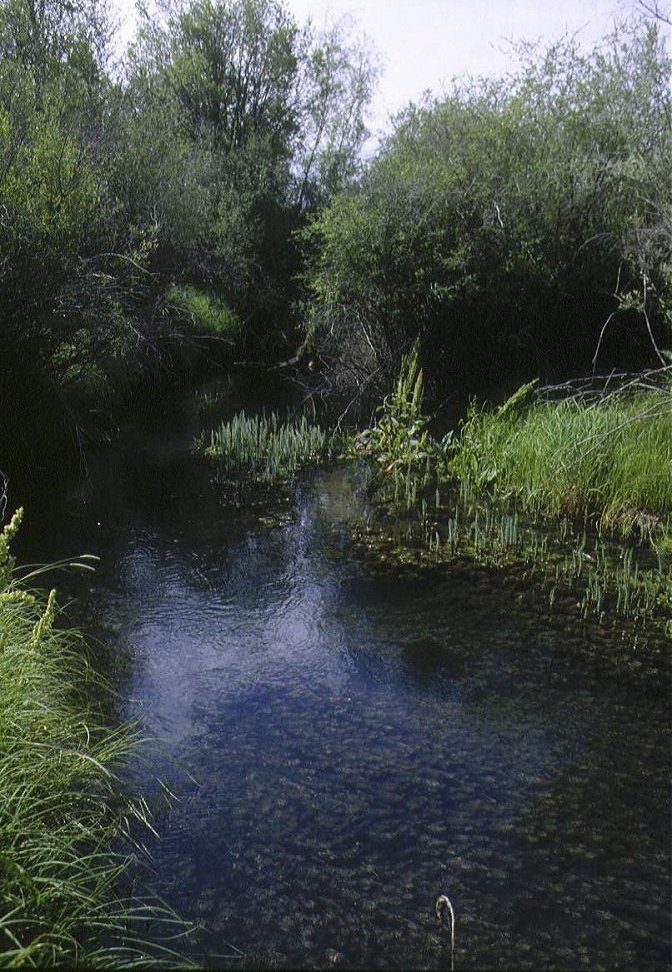 An ice-cold stream, fed by sources, in the Tes-Khem River floodland 5 km SW of the village Erzin.