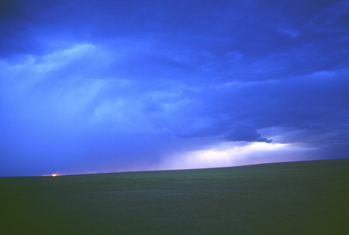 A thunderstorm at sunset over the Ubsu-Nur [Uvs-Nor] Hollow.