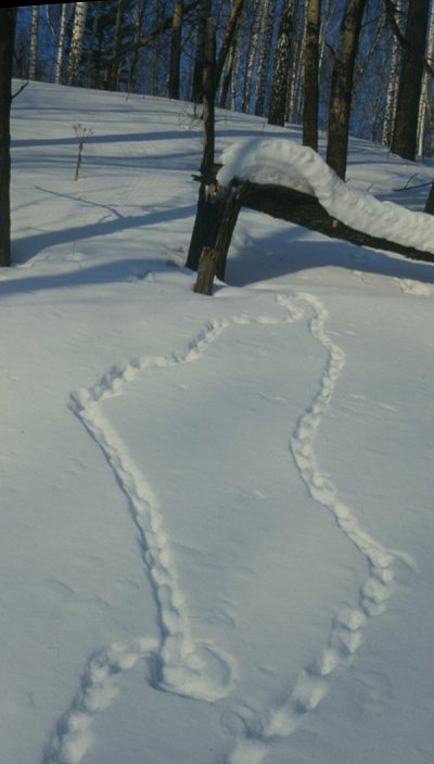 An open pine-asp-birch forest 10 km W of Akademgorodok (Academy Town), Novosibirsk, West Siberia, Russia. 23rd March 1996. O. Kosterin