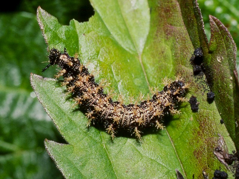 A mature larva on its foodplant Urtica angustifolia Fischer ex Hornem.