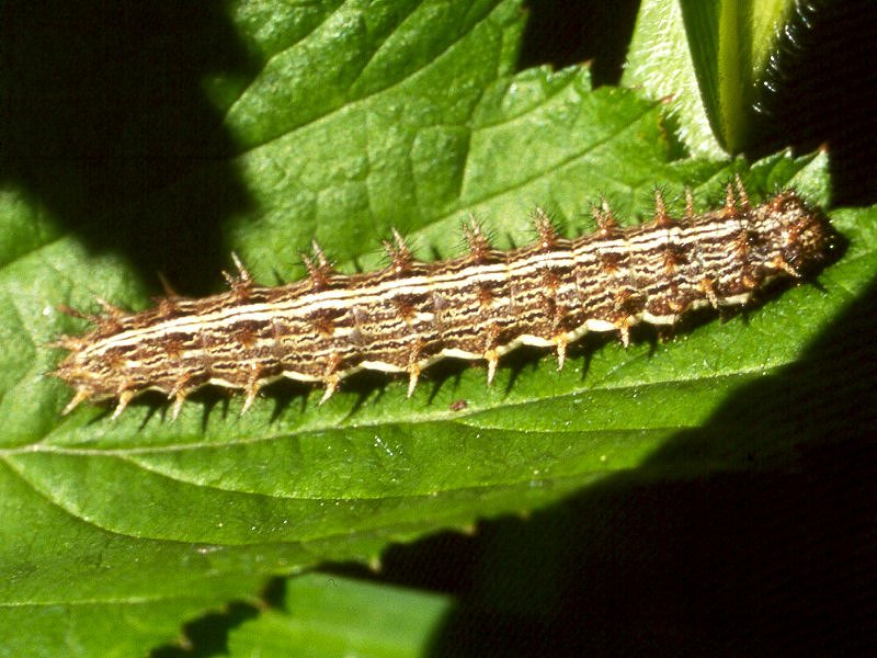 A mature larva on its foodplant Filipendula ulmaria (L.) Maxim.