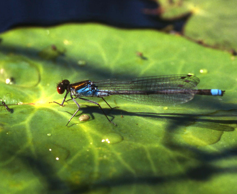 a male on a leaf of Nymphaeoides peltatum