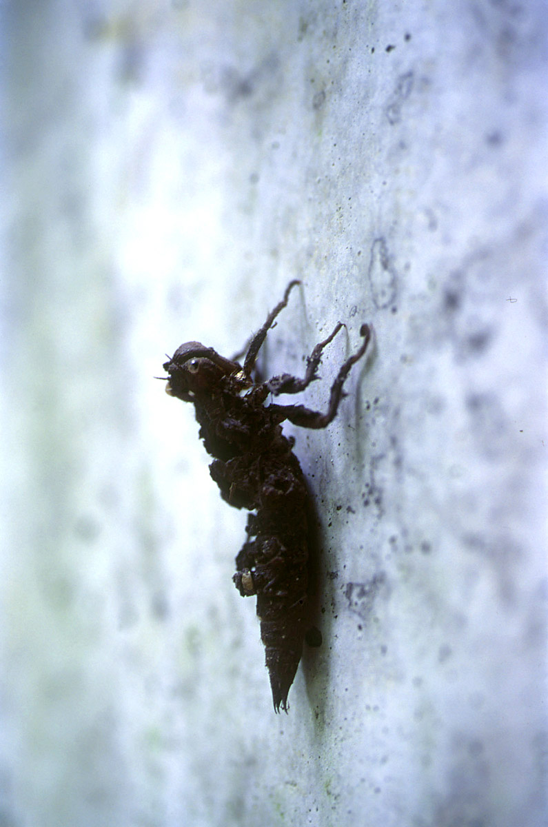 A concrete wall of a hut at a small water storage on Mt. Kongo at Temporin Temple, Gose City, Nara Prefecture, Japan. 3th July 2002.