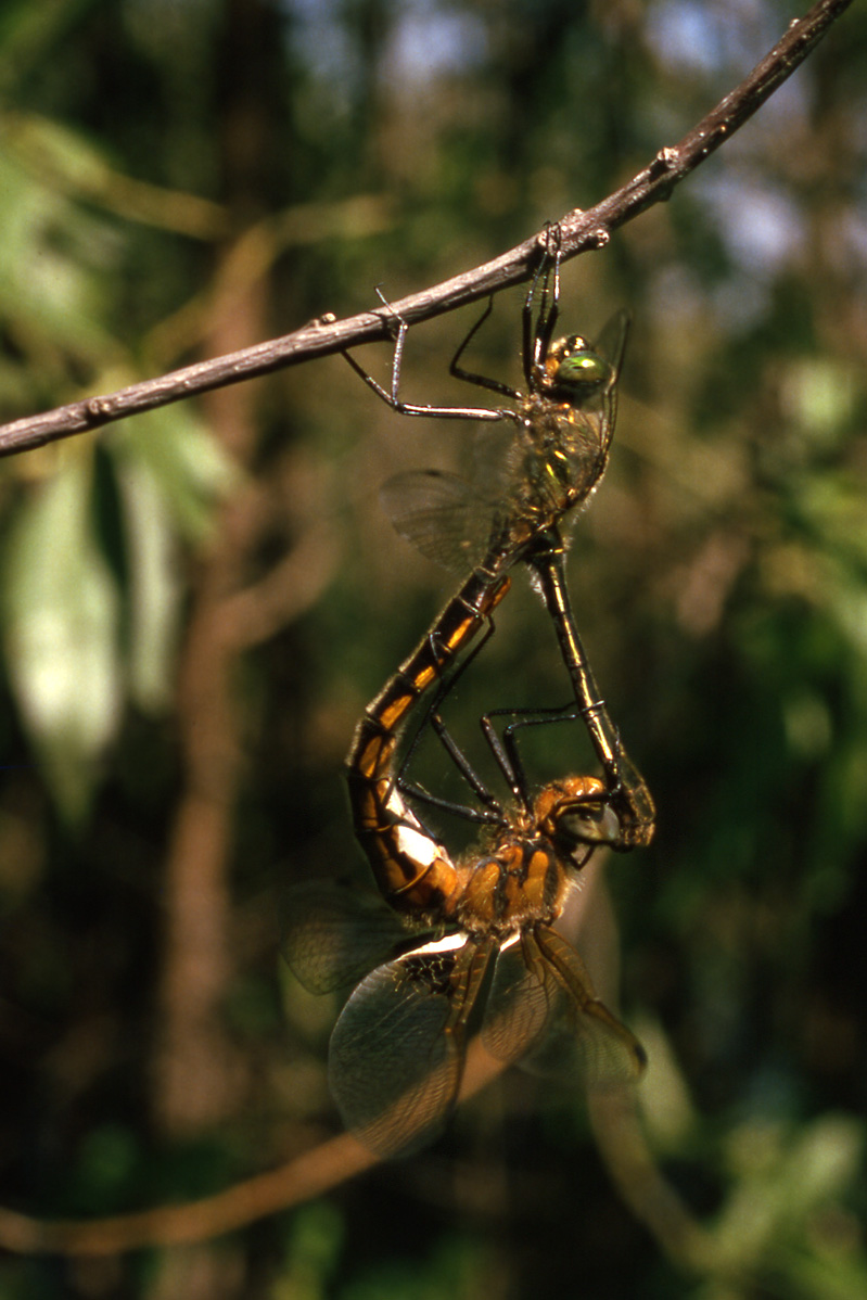 An intergeneric (!) copulation of a male Cordulia aenea (Linnaeus, 1758) and a female Epitheca bimaculata (Charpentier, 1825) ssp. altaica Belyshev, 1851.