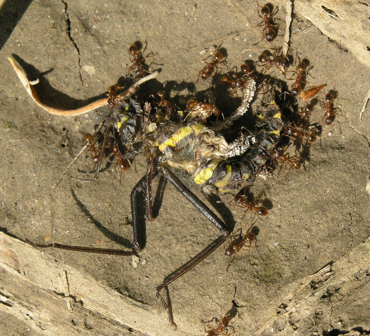 только что выведшийся индивидуум упал и был атакован муравьями.