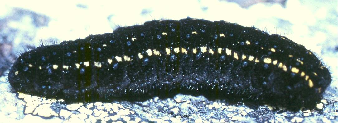 As feeding in Siberia on Rhodiola spp., the larvae of this species are found probably most high in the Altai mountains, on large-stoned screes in the nival belt, high above the aline meadow belt, since there in rock crevices grow two close species, Rhodiola quadrifida (Pall.) Fisch. et Mey and Rh. coccinea (Royl) Boriss. (I don't beleive them being different species). This larva was found on a stone, busking in the sun, at exactly 3000 m above sea level. Noteworthy, at the same time imagines of P. phoebus were not seldom flewing above this rather stee mountain slope.