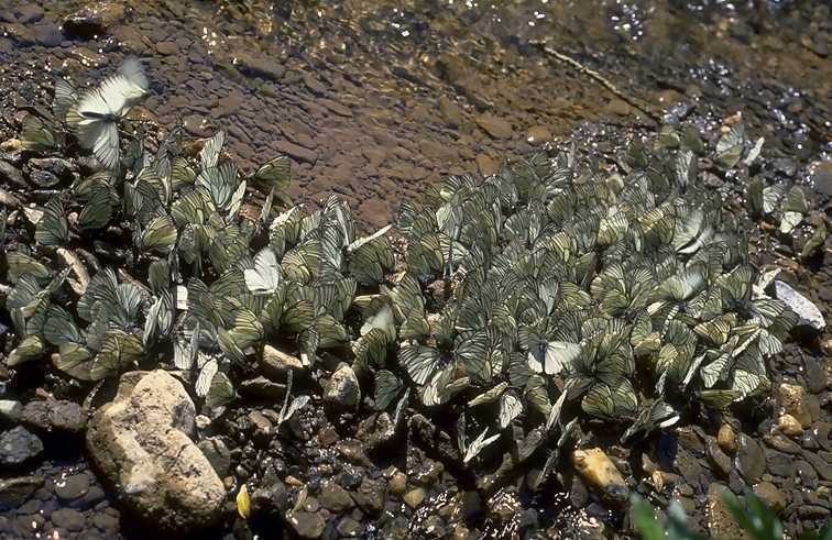 This is the most abundant and omnipresent (and, besides, most simply coloured) butterfly almost everywhere in the forest zone and woody mountains of South Siberia. Almost every year these butterflies appear in immense quantities and fly throughout June, forming incredible congregations on wet ground and swarming at flowering plants. I also often observed these butterflies flying, separately from each other, not in swarms, in the same direction for days but don't know the reason for it. Their main foodplant is the bird cherry (Padus avium), and also Spiraea media, Crataegus sanguinea and other arboreal Rosaceae, in Yakutia, Amurland and Transbaikalia also Vaccinium uliginosum. The larvae live gregareously; they hibernate on silken winter nests on the foodplant branches. Being so abundant, they often almost defoliate small bird cherry trees, the pupae densely covering thick branches at 1-3 m above the ground. These butterflies copulate mostly when they are teneral, just having hatched from the pupae, which are placed usually close to each other. At the same time, most frequently observed and conspicupus element of sexual behaviour of these butterflies is female rejection to male attemnts to mate them, when a pair acquire a very expressive posture with the female widely spreading wings and lifting the abdomen, while male sits above it, moves the wing vigorously and hits the female's abdomen with its own. It looks like an antropomorphic mimic of human sexual intercourse, while in fact the already mated and inreceptive female just lifts its abdomen and spread its wing to prevent genitalic contact. is Thanks to such an expressive behaviour, many females loose most scales from their fore wings which appear almost transparent and look dark. Besides, hind wings of these butterflies are often brightly coloured (red or yellow) with flower pollen. There are very few fruit trees in Siberia and, besides, they are not suffer from this species, which almost does not seem to cause any substantial harm even for adult trees of its main foodplant bird cherry. But almost all local population traditionally beleive these are large whites (Pieris brassice, in Russian "kapustnitsa", i.e. "a cabbager") which eat their cabbage. In fact P. brassice penetrated into West Siberia only about 35 (first recorded by Y.P. Korshunov) and become abundant about 20 years ago, the cabbage suffering mostly from Pieris rapae.