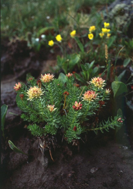 Rhodiola algida (Ledeb.) Fischer et Meyer (= Sedum algidum) - grows in damp habitats in very highlands near snow line in the mountains of Altai, Central Siberia and Mongolia.