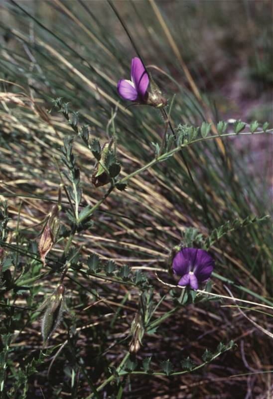 Cicer soongaricum Stephan ex DC. grows on dry detritous southern slopes in the upper part of the coniferous forest belt in the Mountains of Central Asia, penetrates into the SE [Russian] Altai Mts. It belongs to the same genus as the chickpea.