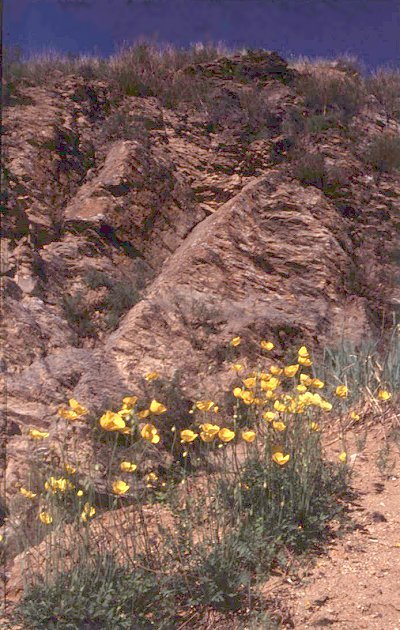 Papaver nudicaule L., Alascan or Iceland Poppy, flowers in mass quantities in meadowy steppes, hill slopes and bank bluffs in Transbaikalia (Dahuria).