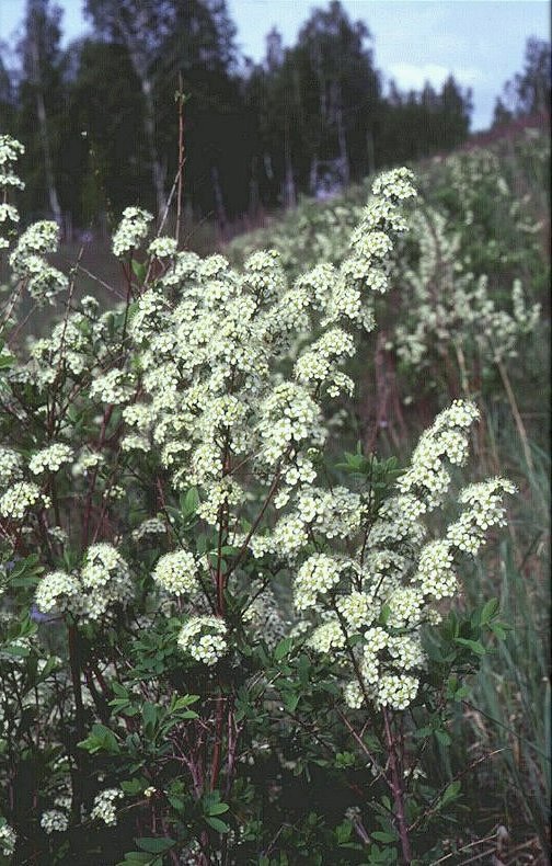 Spiraea crenata L. - grows on open stony slopes and in shrubbery within the steppen and forest-steppen zones from E Europe to West Siberia and Central Asia.