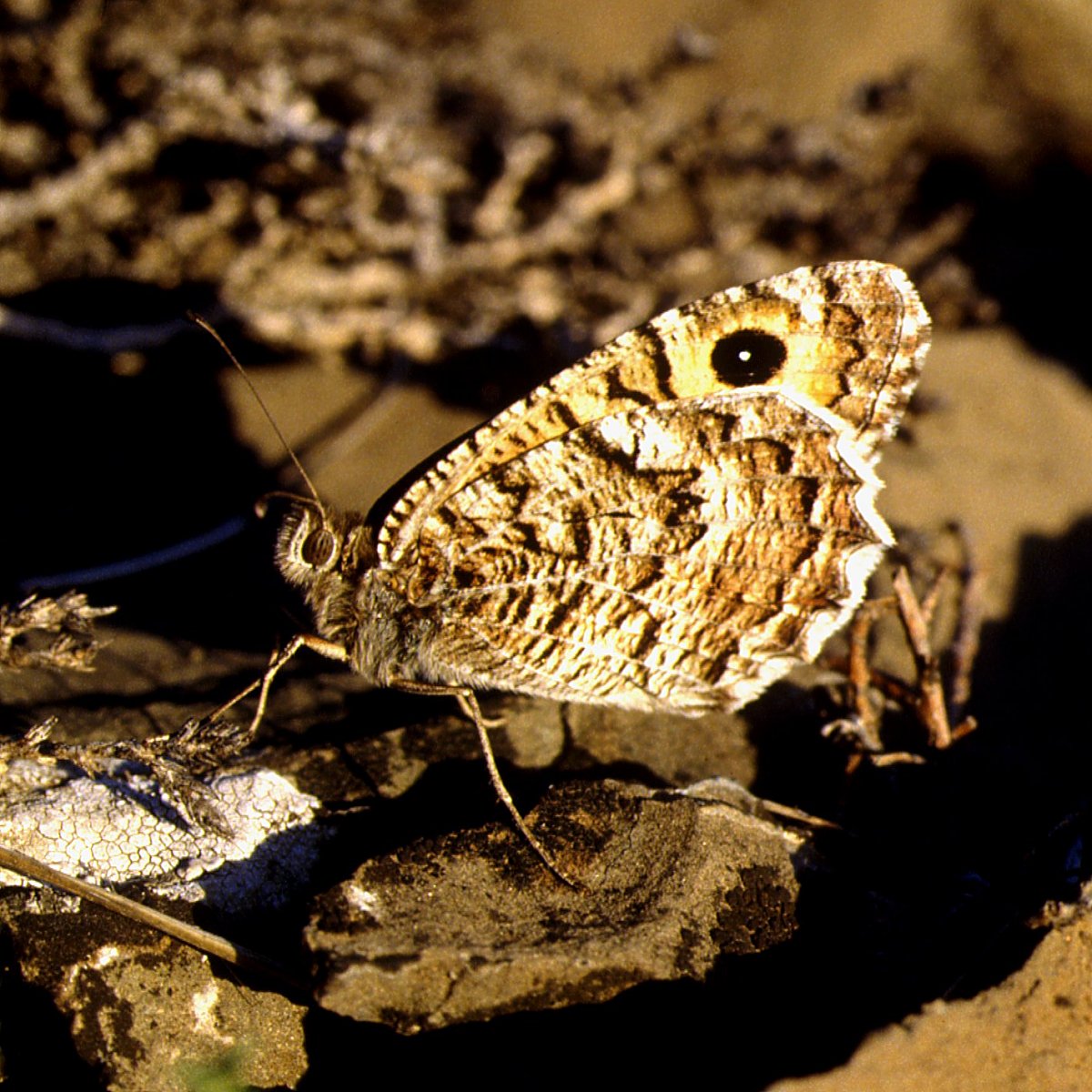 Pseudochazara hippolythe (Esper, 1784) - a butterfly common in Asian steppes, a male, as in many steppen Satyridae its wing underside has a cryptic colouration.