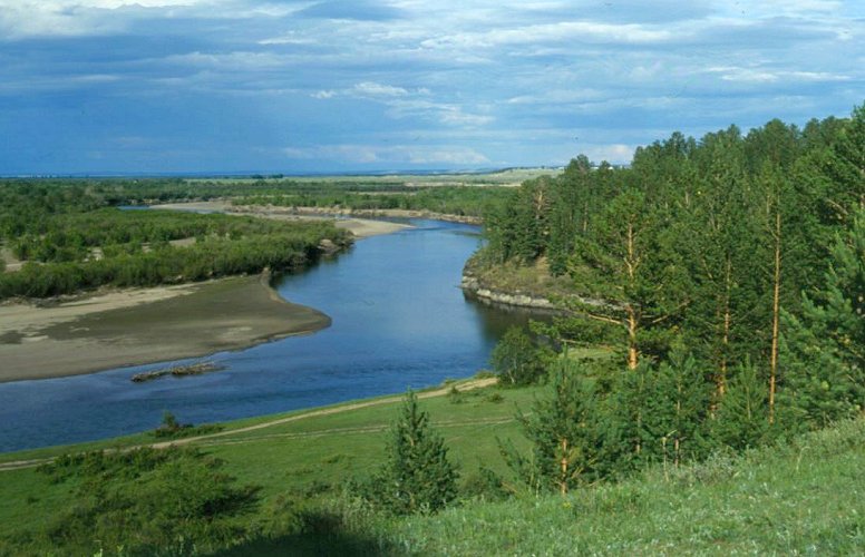 A right arm (Novyi Onon) of the Onon River, one of the major rivers of Transbaikalia froming the great Amur River, a birthplace of Genghis Khan. On its right bank there is a great pine forest called Tsasucheiskii Bor which is offensive on the steppe. It is formed by Pinus sylvestris krylovii (Serg. et Kondr.) Busik, an endemic pine-tree subspecies resistent to a very arid climate of Dahurian Steppes, which grows locally on the banks of the Onon River middle flow and is used for forestation of steppes in Transbaikalia and China.
