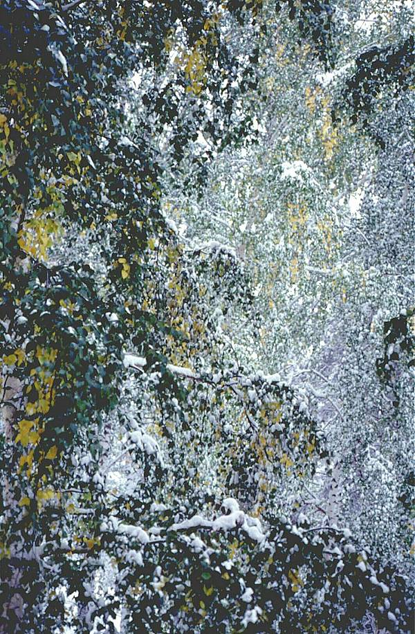 White birch (Betula pendula Roth.; = Betula verrucosa Ehrh.) forest after an unexpected September snow.