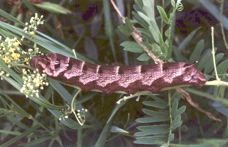 A mature caterpillar of Deilephila elpenor (Linnaeus, 1758), Large Elephant Hawk, on its foodplant Galium verum L.